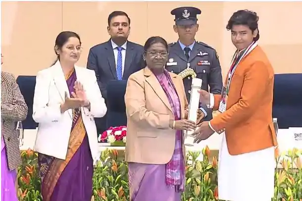 New Delhi - बिहार के 14 वर्षीय क्रिकेट सनसनी वैभव सूर्यवंशी को उनके असाधारण खेल कौशल के लिए प्रधानमंत्री राष्ट्रीय बाल पुरस्कार से सम्मानित किया गया है। राजधानी नई दिल्ली स्थित राष्ट्रपति भवन में आयोजित एक भव्य समारोह के दौरान राष्ट्रपति द्रौपदी मुर्मू ने उन्हें यह प्रतिष्ठित पुरस्कार प्रदान किया।