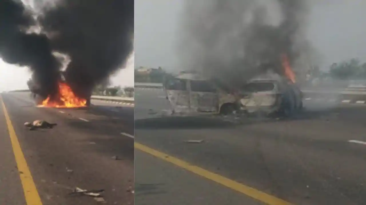 पूर्वांचल एक्सप्रेस-वे पर दिल दहलाने वाला हादसा। पानी पीने रुकी कार में पीछे से टक्कर, लगी आग। मऊ के एक ही परिवार के 5 लोगों की जलकर मौत, 4 घायल हो गए।