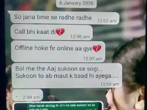 घटना के बाद पति-पत्नी के बीच हुई व्हाट्सएप चैट सामने आई है, जो उनके रिश्तों में कड़वाहट की गवाही दे रही है। पत्नी रिया ने विक्रम को मैसेज में लिखा, "तुझ जैसा नामर्द, धोखेबाज नहीं चाहिए। नफरत हो गई है तुझसे, तेरे नाम से और तेरी दोगली हरकतों से।" विक्रम बुधवार दोपहर 3 बजे पत्नी को मनाने ससुराल गया था, लेकिन रिया ने दरवाजा बंद कर लिया। दोपहर 3:40 बजे उसने आखिरी बार कॉल की, जिसे पत्नी ने रिसीव नहीं किया।