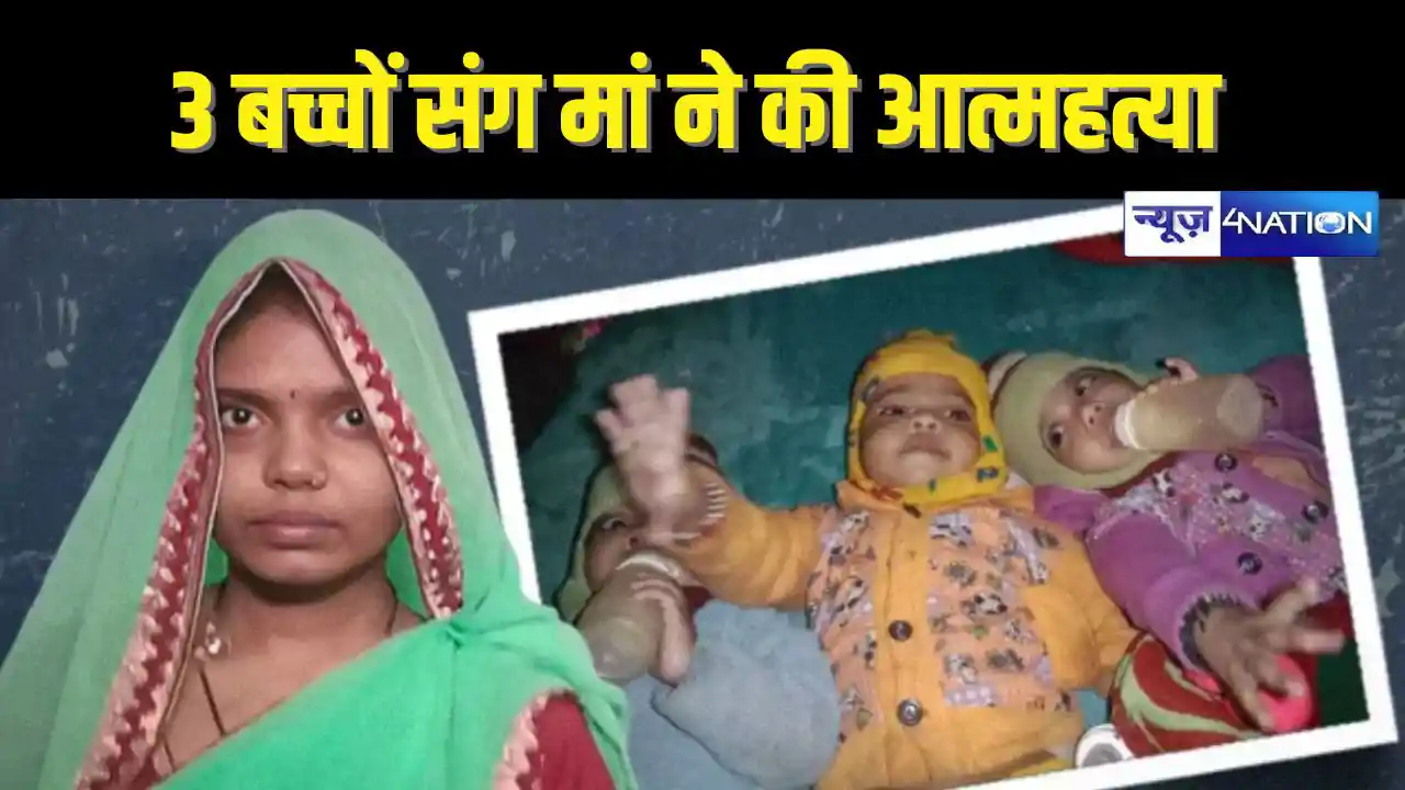 UP CRIME - पति की प्रताड़ना से परेशान होकर विवाहिता ने अपने तीन बच्चों के साथ फांसी लगाकर आत्महत्या कर ली। तीनों बच्चों की उम्र सिर्फ डेढ़ साल थी। घटना के बाद इलाके में लोगों में दहशत का माहौल है।