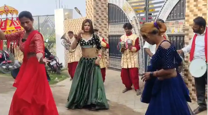 डीजे और ढोल-नगाड़ों की थाप पर थिरके लोग