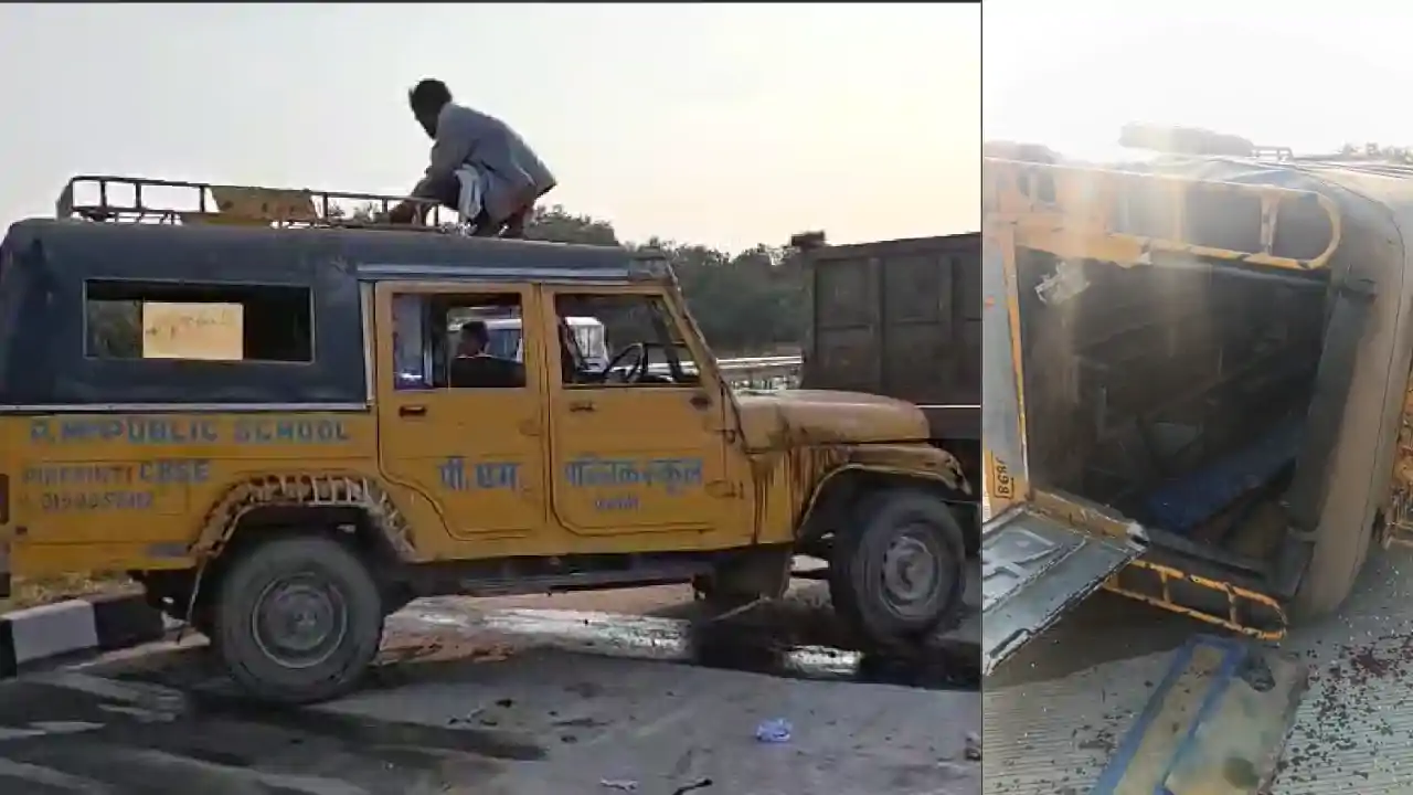 Bihar Road Accident : भागलपुर में फोरलेन पर स्कूल वैन ने मार