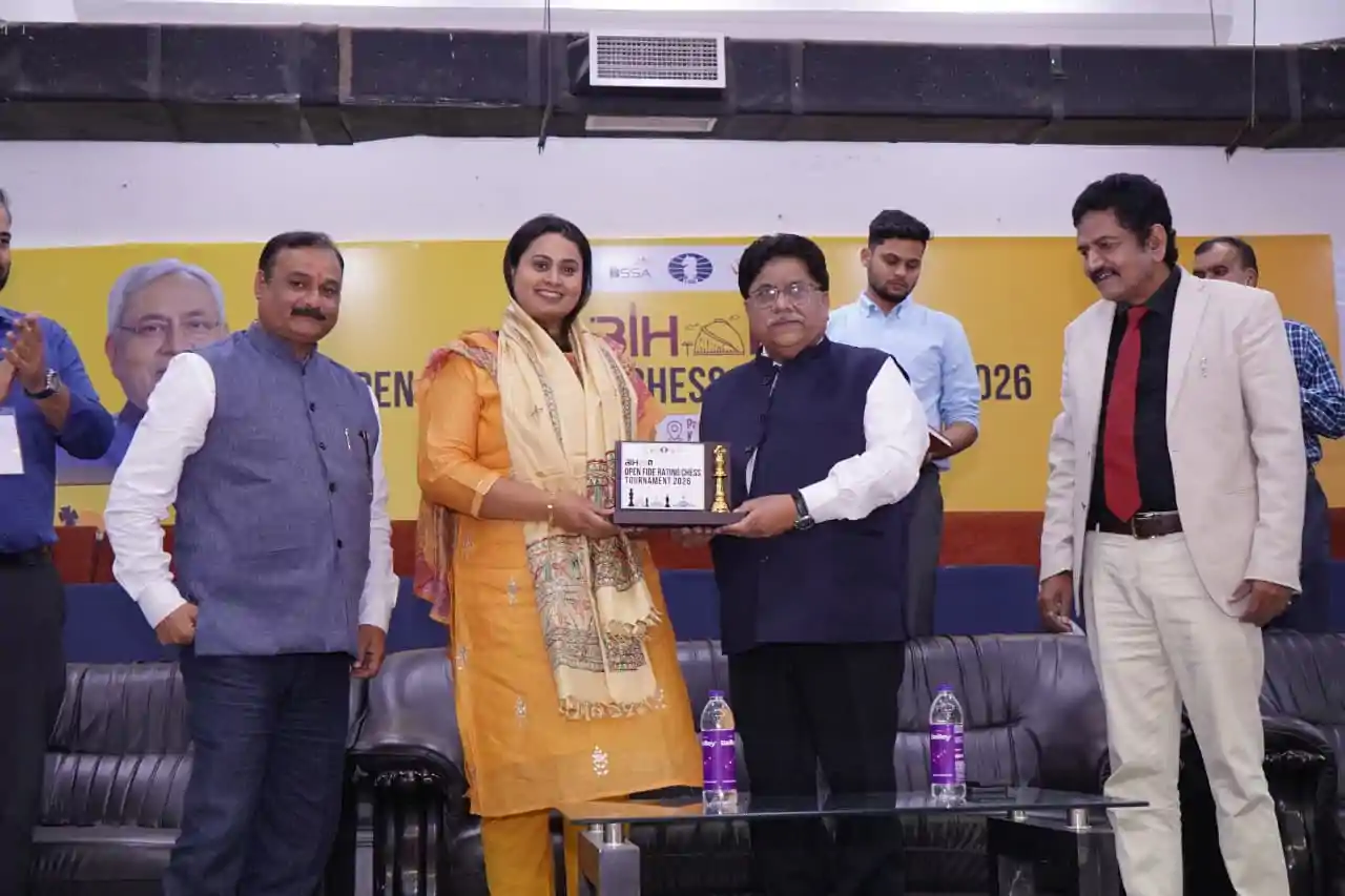 Patna - पटना के पाटलिपुत्र खेल परिसर में आयोजित बिहार ओपन फिडे रेटिंग शतरंज प्रतियोगिता का छठा चक्र रोमांचक मोड़ पर पहुँच गया है। बिहार सरकार के खेल विभाग और बिहार राज्य खेल प्राधिकरण के संयुक्त तत्वावधान में चल रही इस बड़ी प्रतियोगिता में खेल मंत्री सुश्री श्रेयसी सिंह ने शिरकत कर खिलाड़ियों का उत्साहवर्धन किया।
