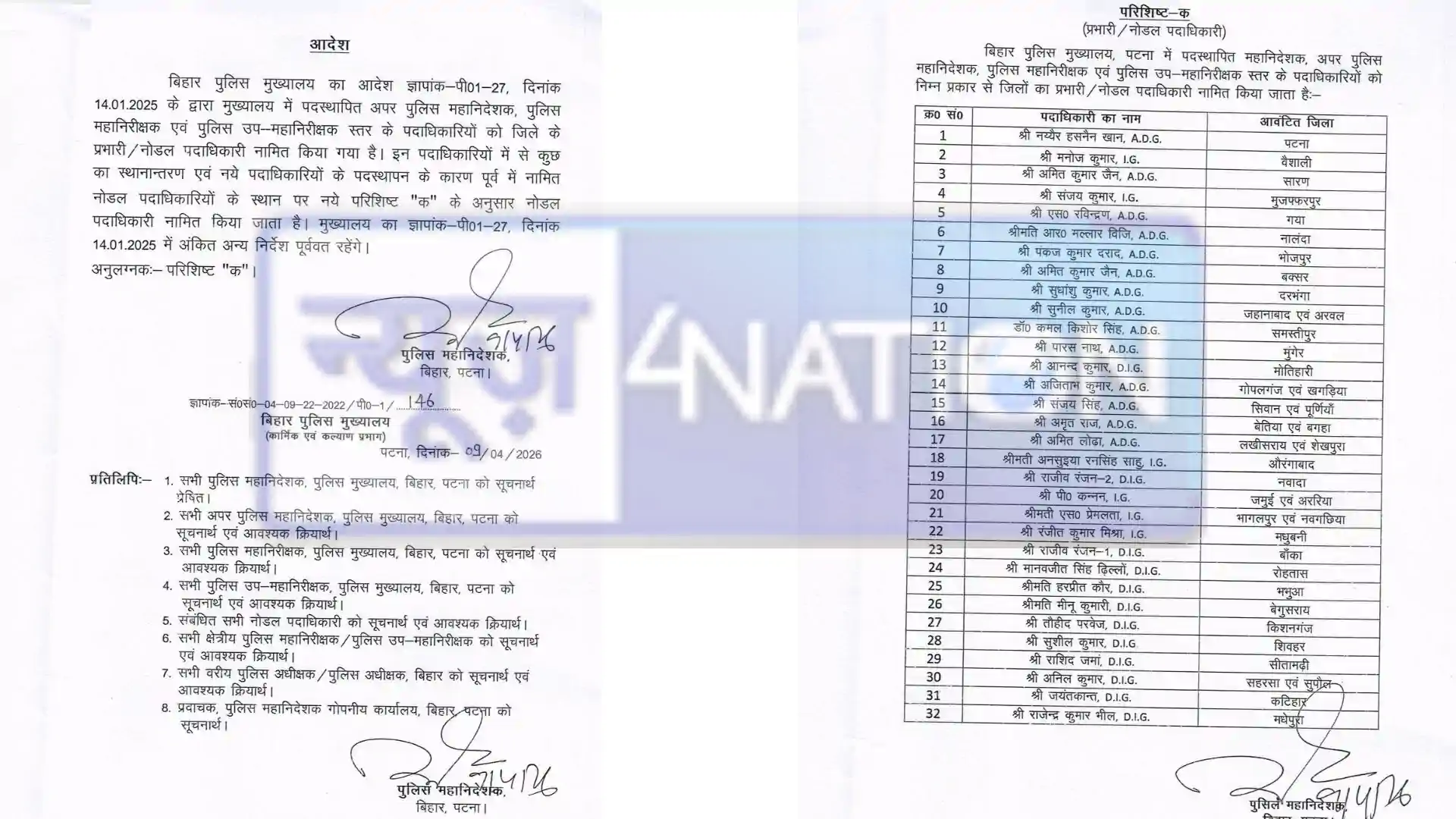 बिहार पुलिस का 'मिशन सुरक्षा': जिलों में तैनात हुए पुलिस नोडल प्रभारी, पटना की कमान नैय्यर हसनैन खां को