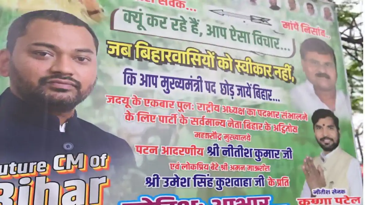 राजधानी पटना की सड़कों से लेकर पार्टी दफ्तरों तक, हर जगह नए नेतृत्व की मांग अब खुलकर सामने आ रही है। जगह-जगह लगे पोस्टर इस बात का इशारा कर रहे हैं कि सत्ता परिवर्तन की आहट तेज़ हो चुकी है। खास बात यह है कि इन पोस्टरों में निशांत कुमार को फ्यूचर सीएम के तौर पर पेश किया जा रहा है, जिसने सियासी बहस को और भी गर्मा दिया है।