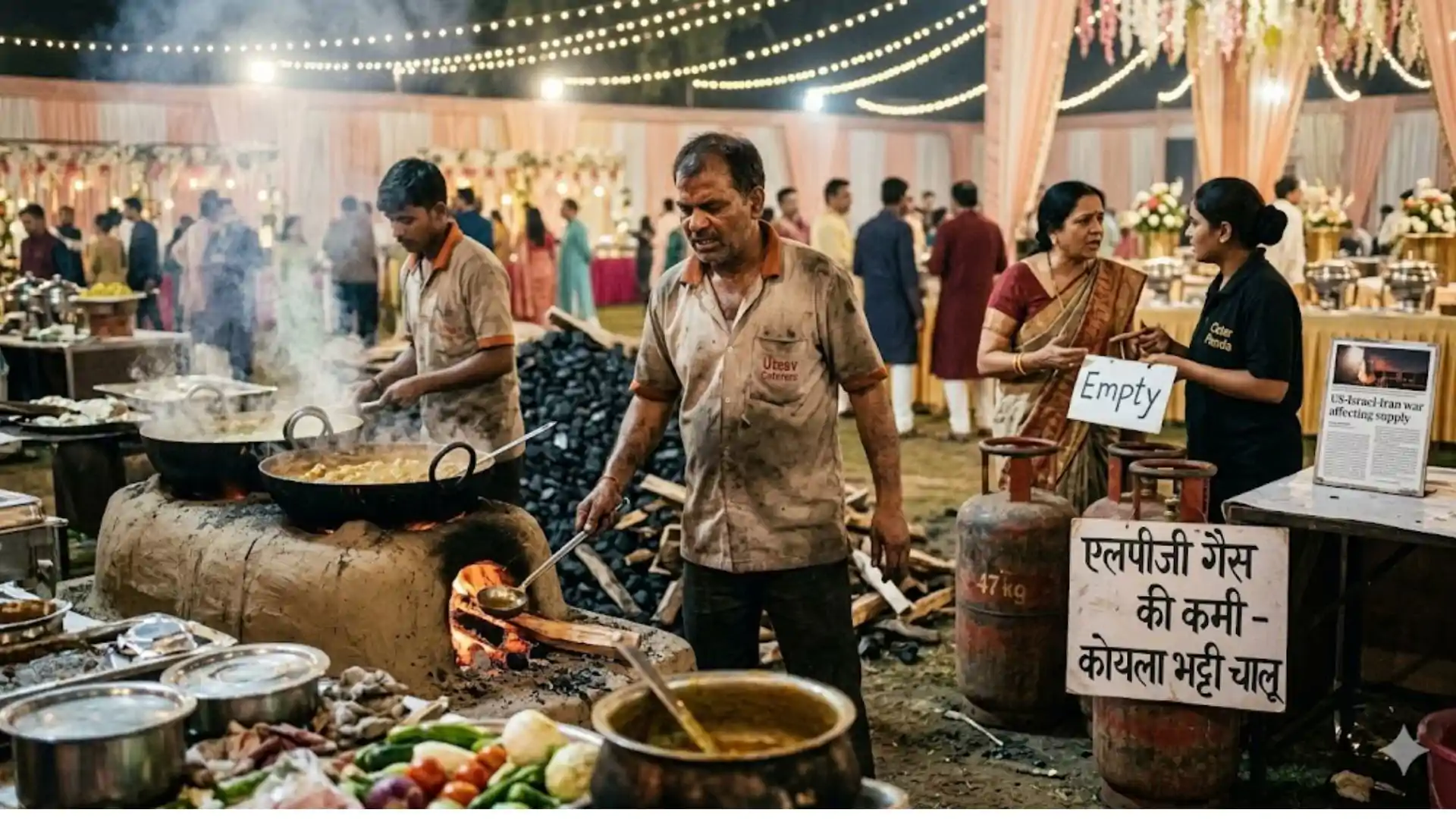 शादियों के व्यस्त सीजन के बीच कैटरिंग व्यवसाय को एलपीजी (LPG) गैस सिलेंडर की भीषण कमी का सामना करना पड़ रहा है।मांग और आपूर्ति के बीच बढ़ते अंतर के कारण गैस के विकल्प के रूप में कोयले की भट्टी जैसे पुराने तरीकों को अपनाने पर विचार करना शुरू कर दिया