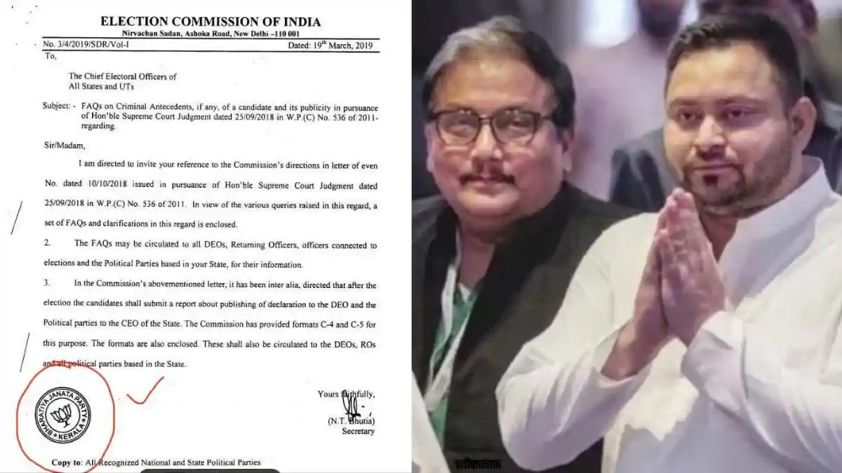 BJP's seal on Election Commission's letter : निर्वाचन आयोग के पत्र पर भाजपा की मुहर लगे होने से उपजे विवाद में राजद ने सख्त प्रतिक्रिया देते हुए बड़ी चिंता जाहिर की है. विधानसभा चुनाव के प्रचार वाले राज्य केरल में सोमवार को एक बड़ा राजनीतिक विवाद खड़ा हो गया. यहां निर्वाचन आयोग के एक पत्र पर भाजपा की प्रदेश इकाई की मुहर लगी पाई गई. सोशल मीडिया पर चुनाव आयोग का एक पुराना लेटर वायरल हो रहा है, जिस पर केरल बीजेपी की मुहर लगी हुई है, जिसके बाद देशभर में सियासी माहौल गरमा गया है.