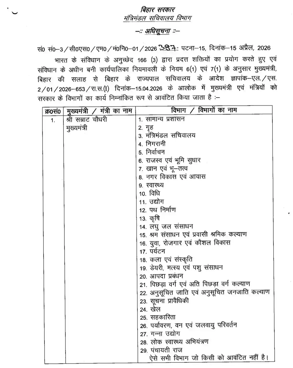 सम्राट कैबिनेट का हुआ बंटवारा, मुख्यमंत्री के पास 29 विभाग, गृह विभाग भी भाजपा के पास, जदयू को सिर्फ 18