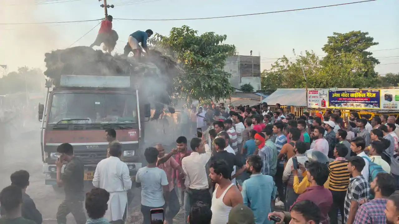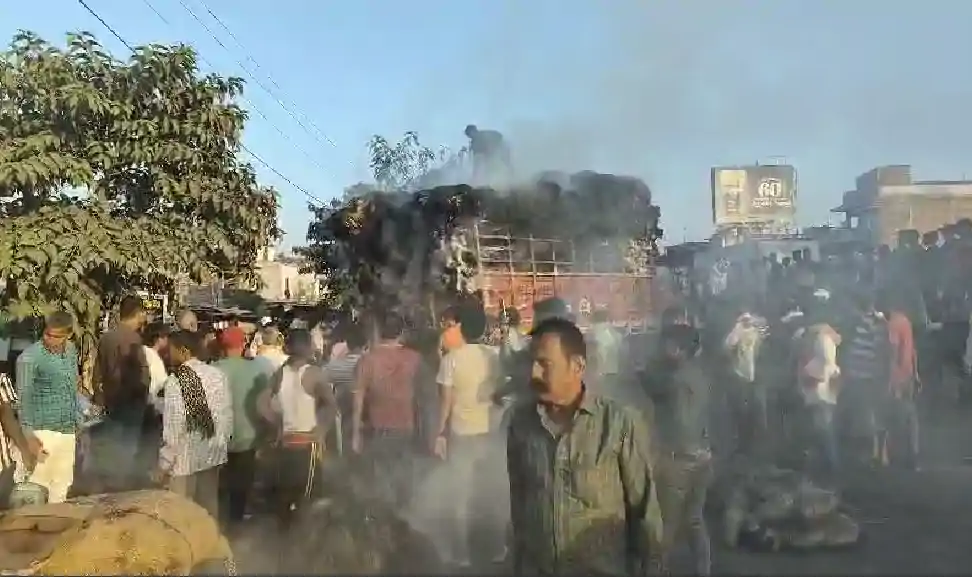 एनएच 27 पर पटुआ लदे ट्रक में आग लगने से मची अफरा तफरी, एक पक्षी के कारण हुआ हादसा, लाखों का नुकसान